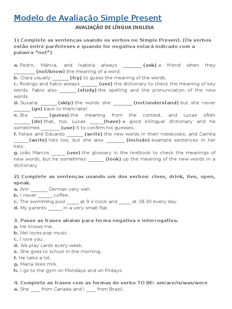 Aqui estão as recomendações de informações sobre Exemplo De Frases No Simple Present.