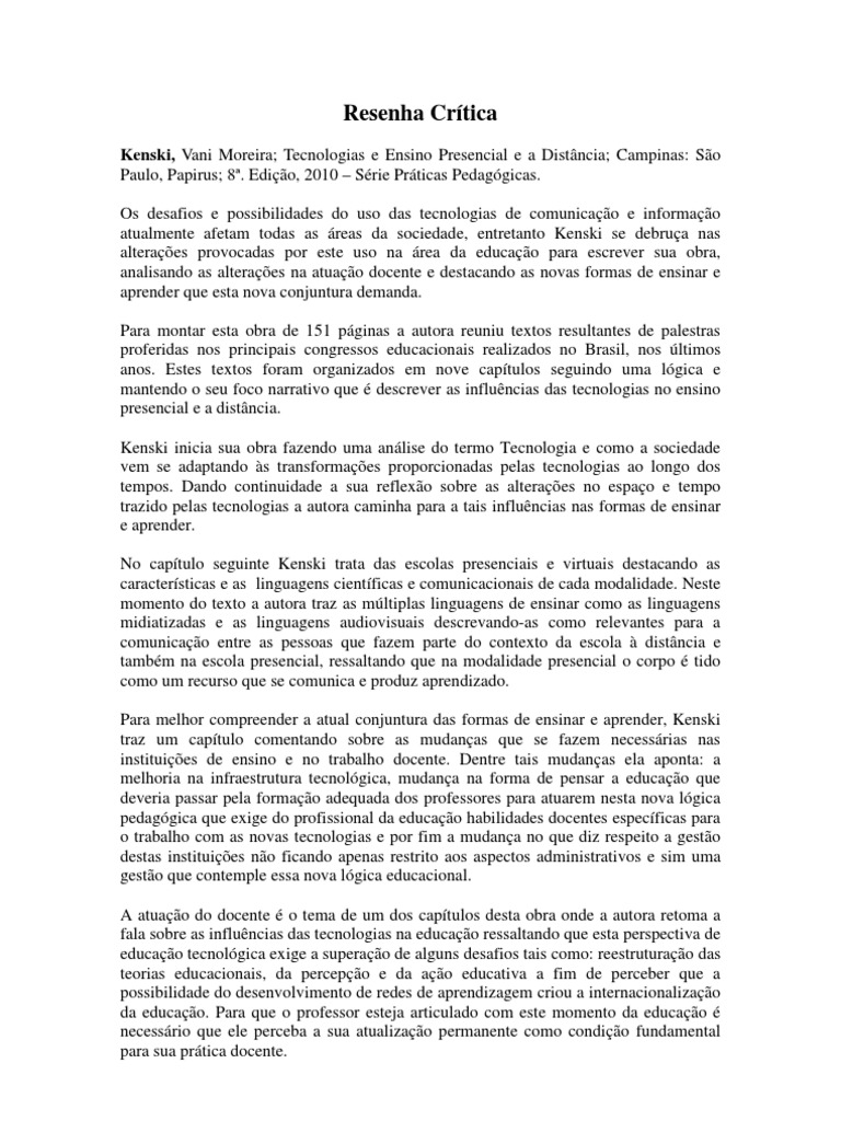 Resenha Critica Resenha Critica De Um Artigo Cientifico