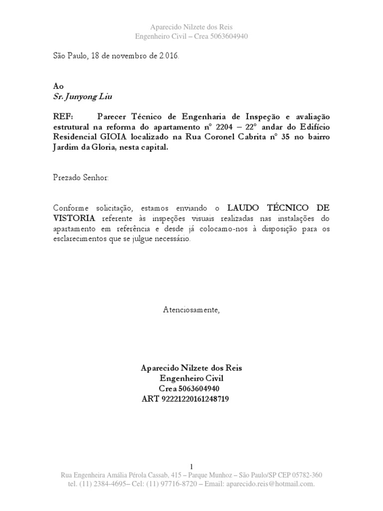 Assim, as fotos sobre exemplo de laudo para reforma de apartamento. Obrigado do admin Vários Exemplos 2019 blog para todos vocês.