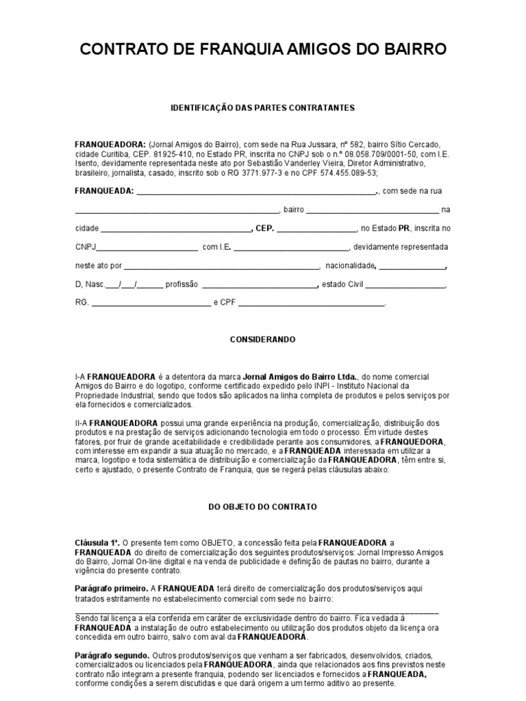 Contrato De Franquia Modelo Exemplo Word E Pdf