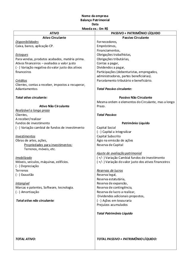 Informações com fotos relacionadas Exemplo De Balanço Patrimonial Completo Com Valores.