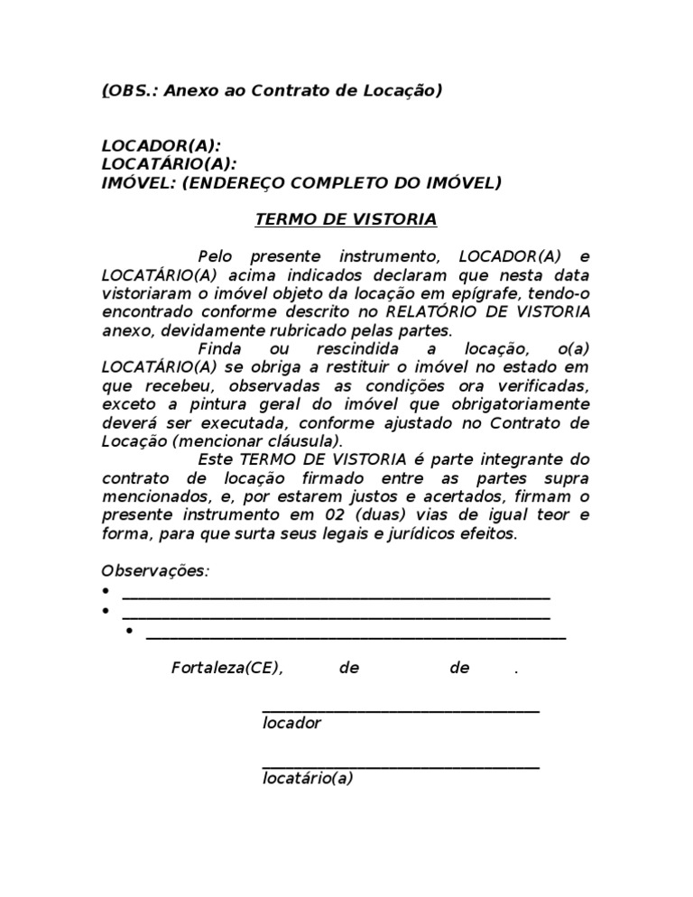 Modelo Contrato De Aluguel Passo A Passo Laudo E Vistoria