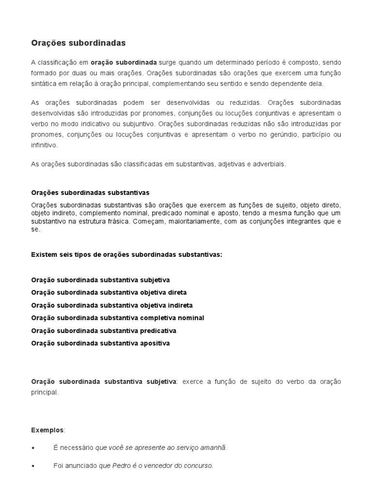 Exemplos De Orações Subordinadas Substantivas Tudo O