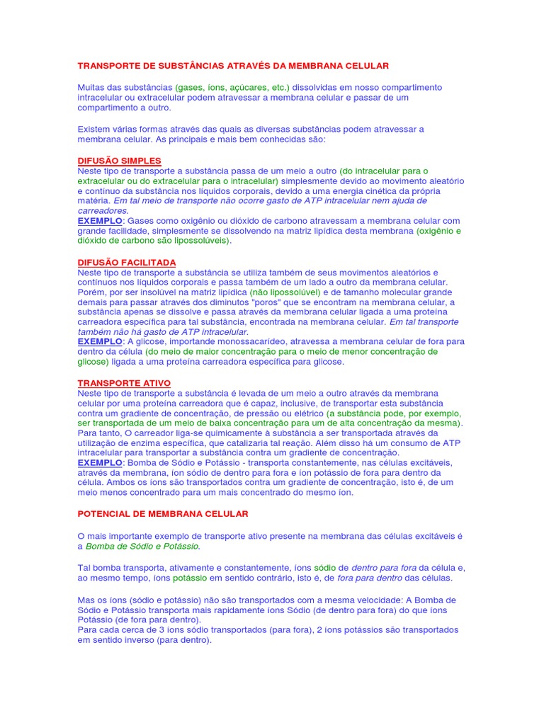 Transporte Ativo E Passivo Pela Membrana Plasmática Cola