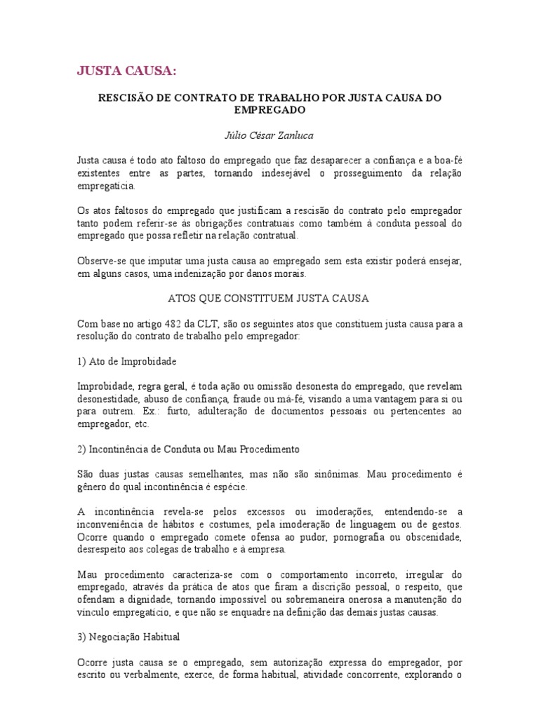 O seguinte é uma discussão sobre a Incontinência De Conduta Ou Mau Procedimento Exemplo.