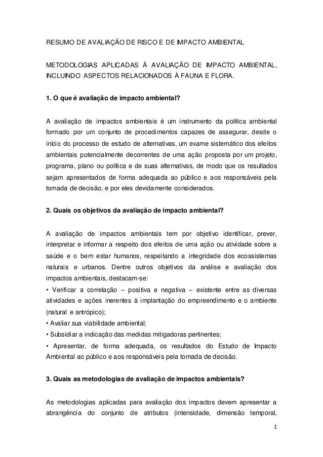 Resumo De Avaliação De Risco E De Impacto Ambiental