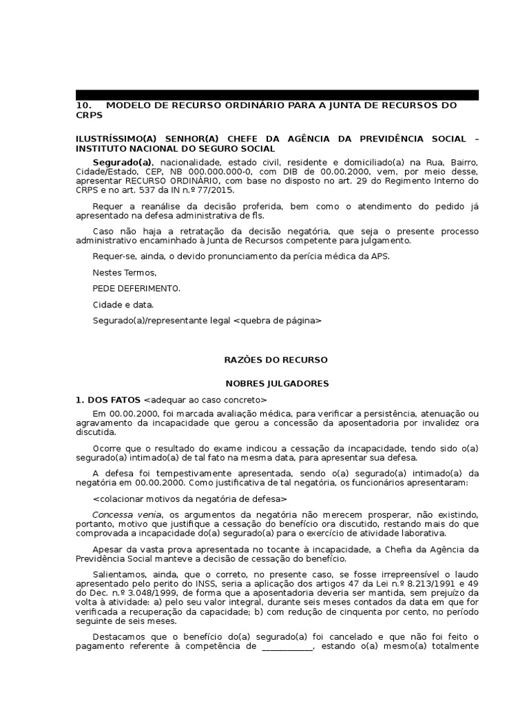 10 Modelo De Recurso Ordinário Para A Junta De Recursos Do