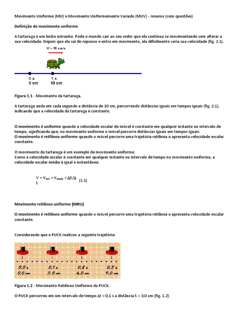 O Movimento Retilíneo Uniformemente Variadoparte1 Docsity