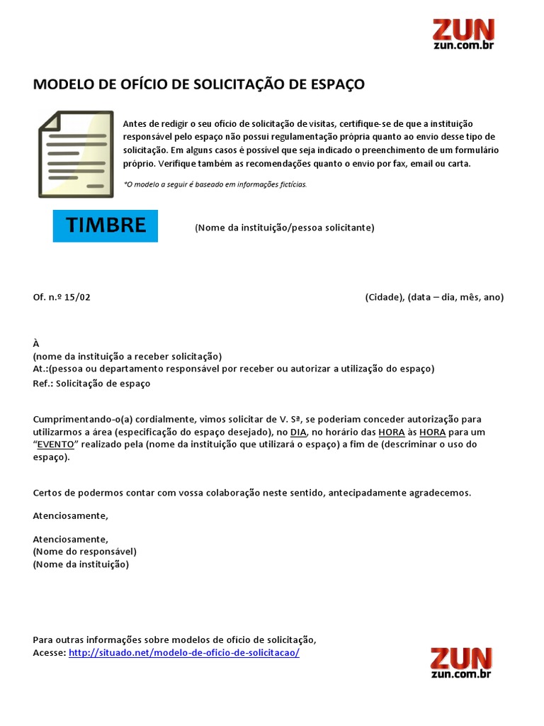Modelo De Ofício De Solicitação De Espaço