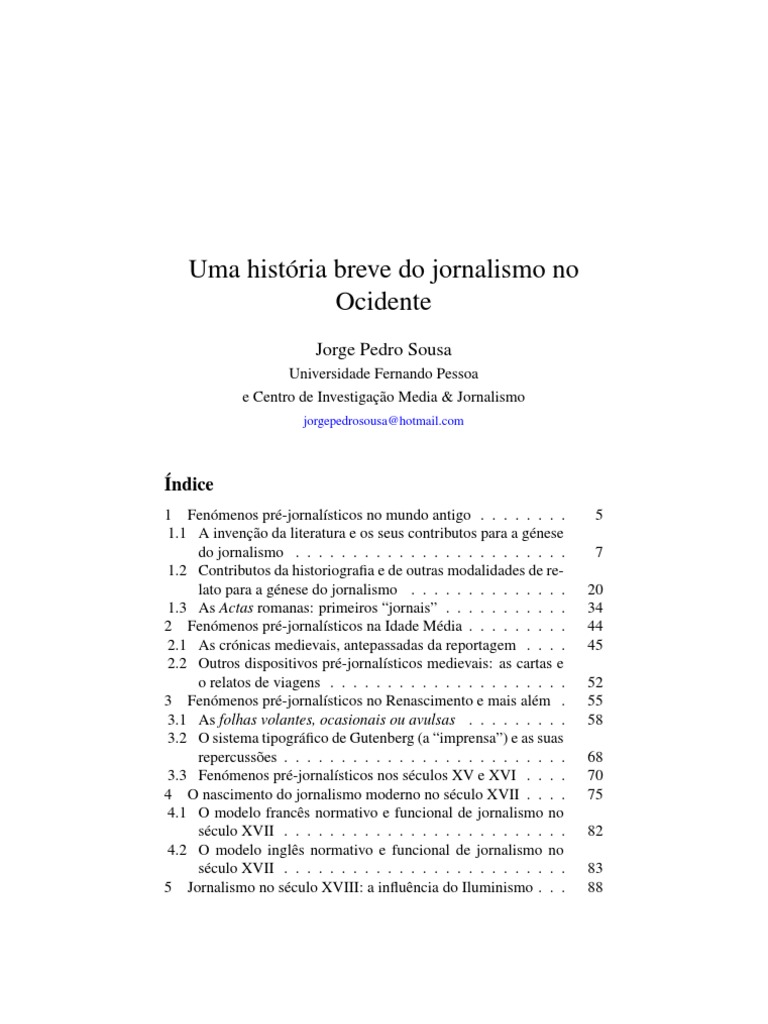 Sousa Jorge Pedro Uma Historia Breve Do Jornalismo No
