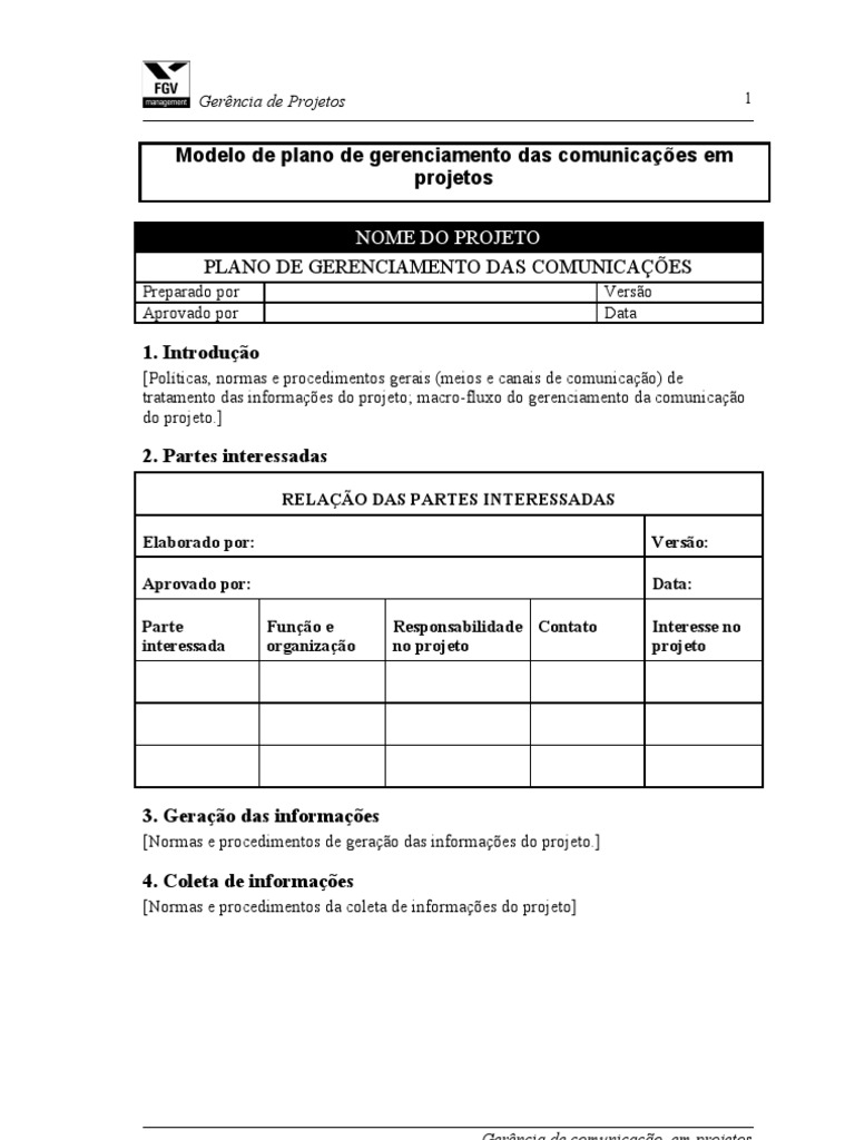 Modelo Fgv De Plano De Gerenciamento Das Comunicações Em