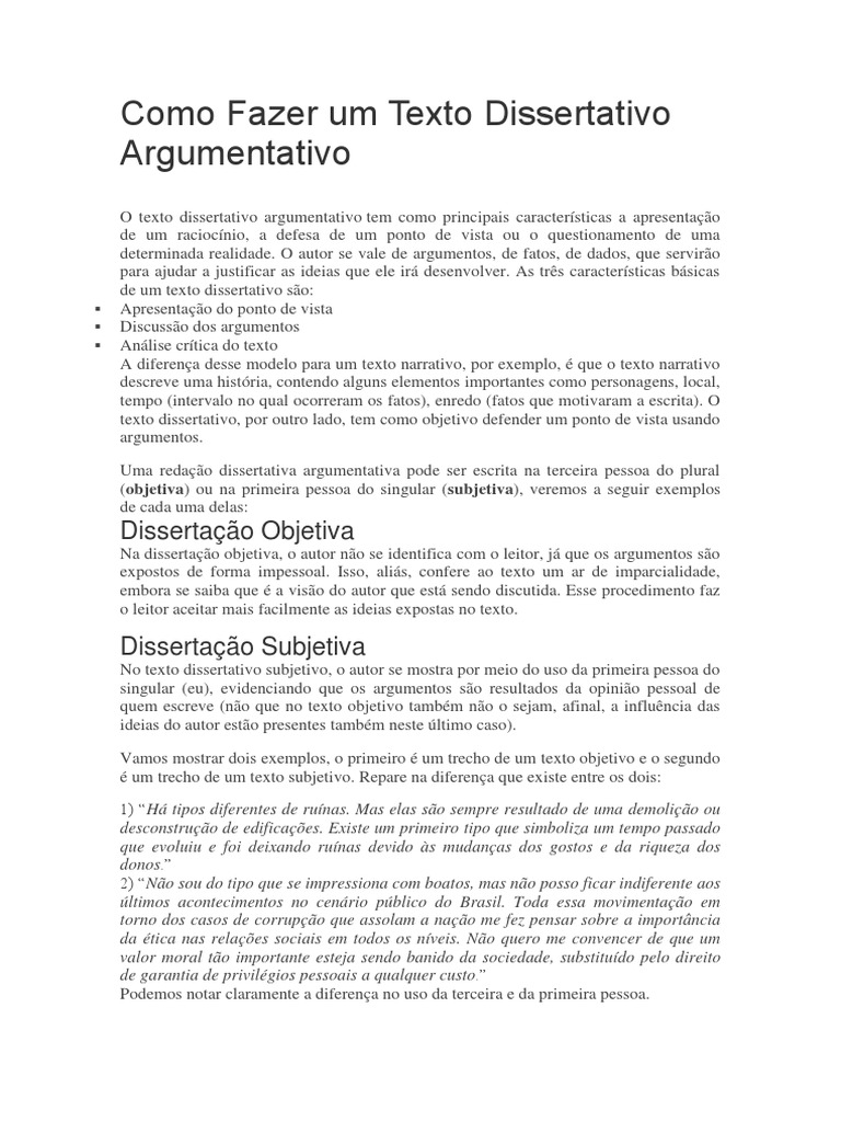 Texto Dissertativo Argumentativo Como Fazer E Exemplo