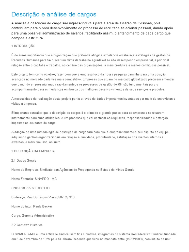 Descrição E Análise De Cargos