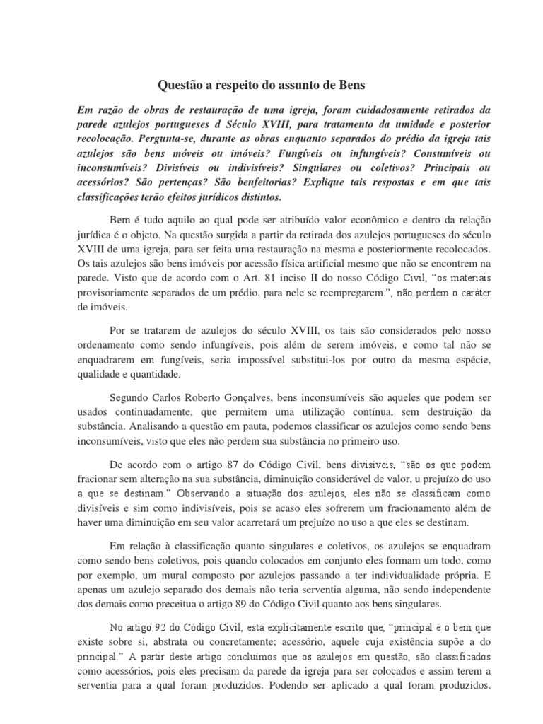 Bens Principais E Acessorios Direito Civil I