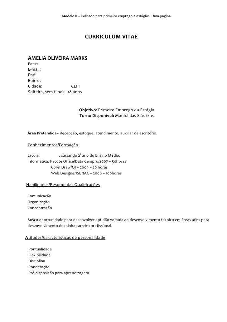 Se você continuar a navegar o site você aceita o uso de cookies. Modelo de currículo de primeiro emprego o curriculum vitae é um cartão de visita que tem a função de convencer o profissional de rh que você é a pessoa mais indicada àquela função.