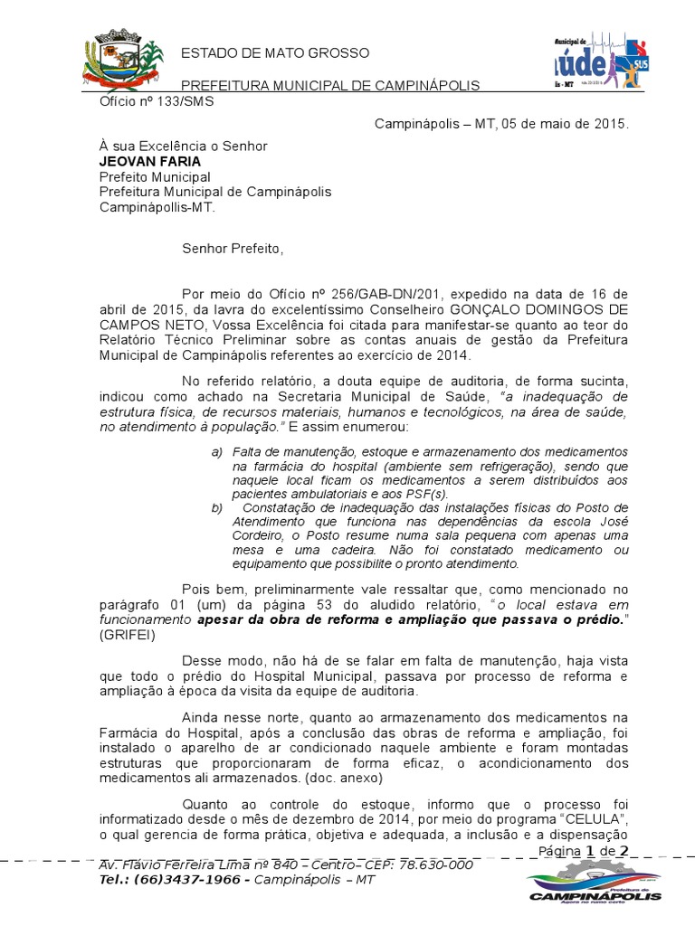 Transparência Pública Carta Enviada à Prefeito E Câmara De