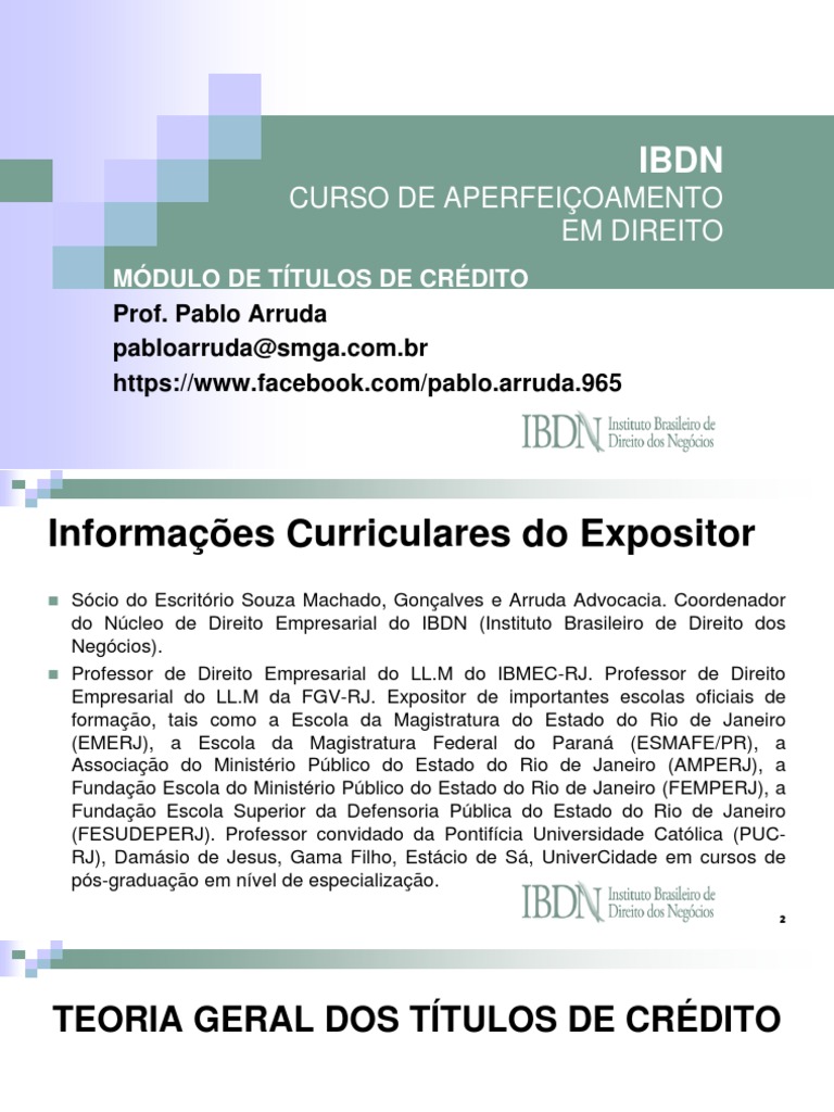 Modulo De Titulos De Credito 2013 Slides Ibdn Pablo Arruda1