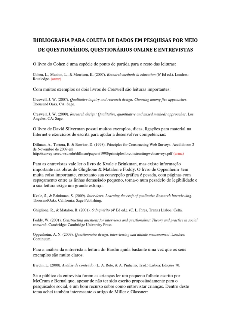 Bibliografia Para Coleta De Dados Em Pesquisas Inquiry