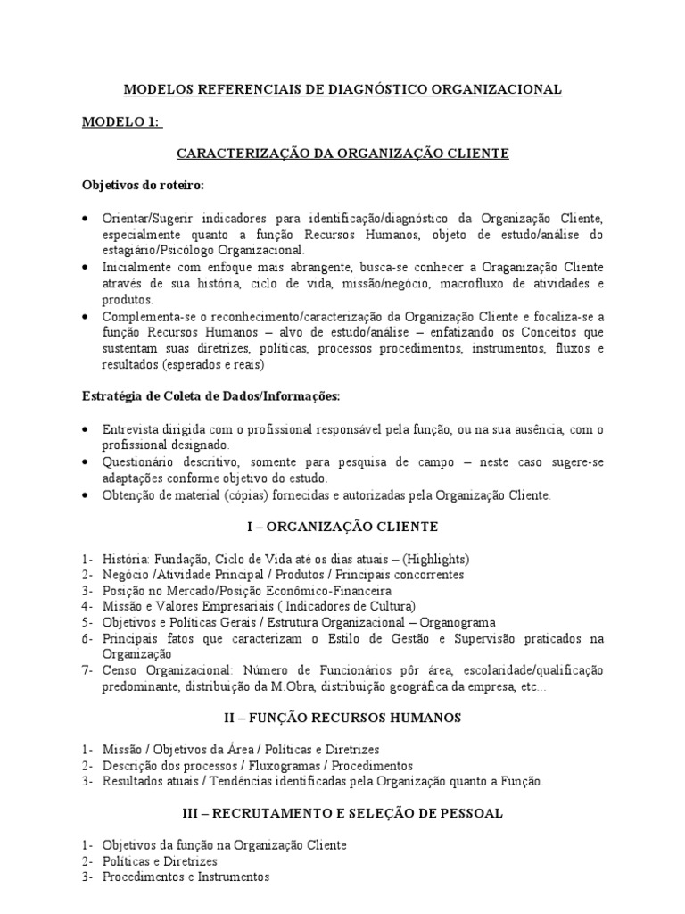 Modelos Referenciais De Diagnóstico Organizacional Gestão