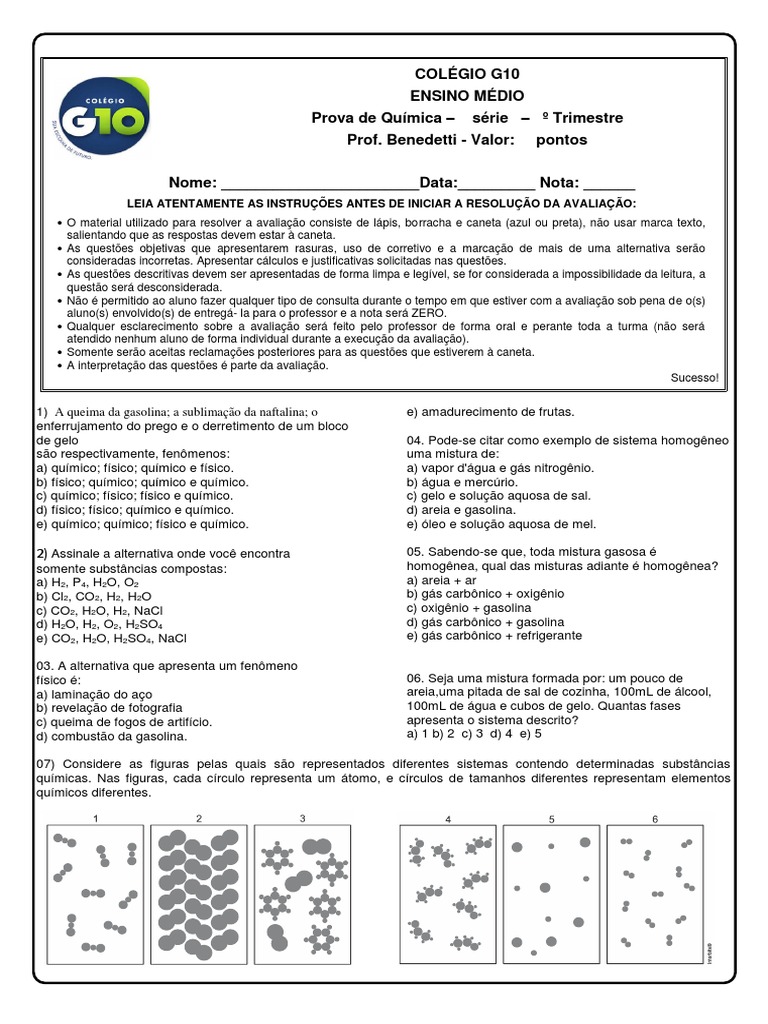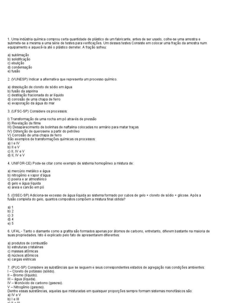 1º Exercício De Química Geral Sp E Mistura Química Aplicada