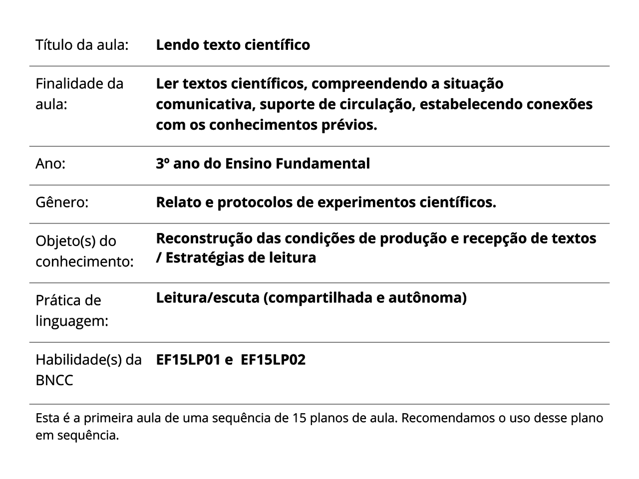 Plano De Aula 3º Ano Língua Portuguesa Lendo Texto
